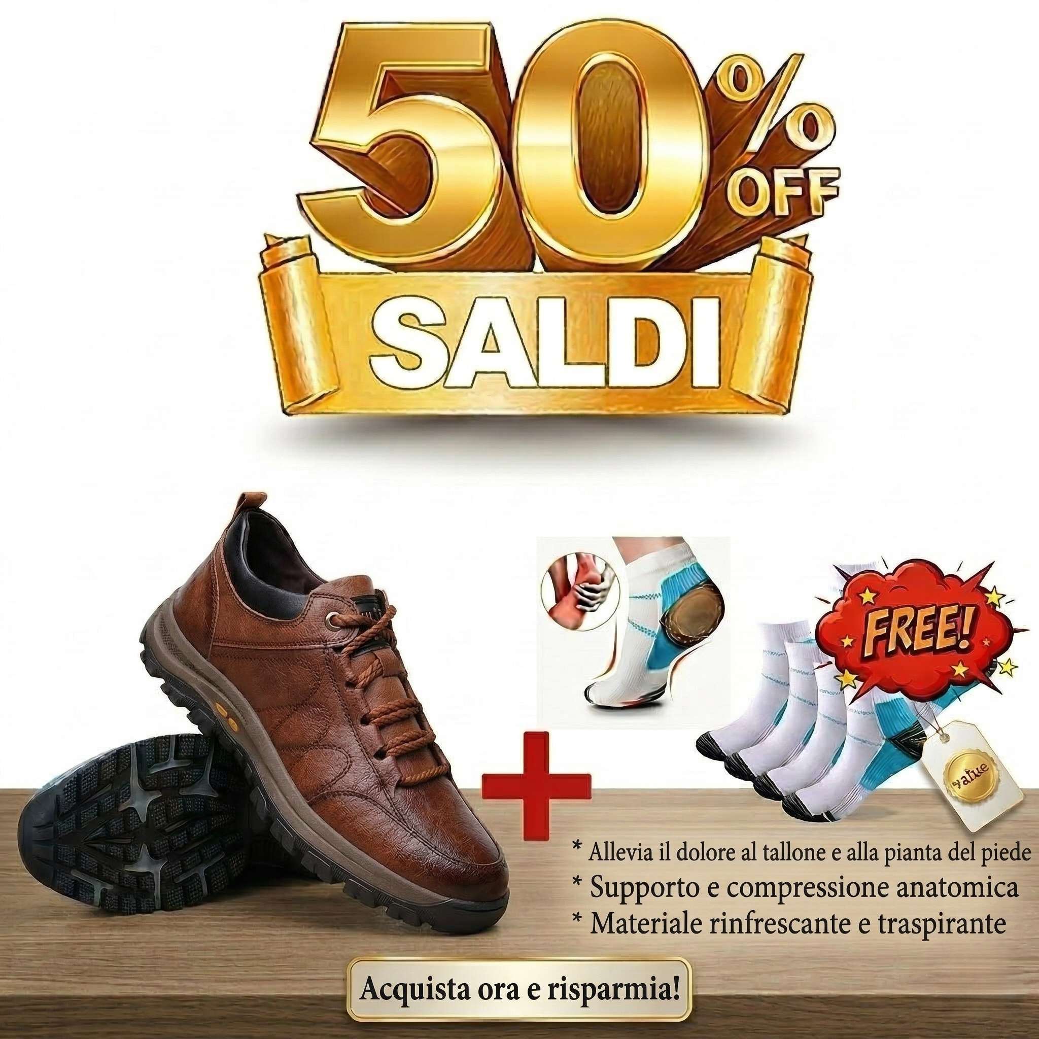 ✅ Ordina oggi e ricevi in omaggio un paio di calze ortopediche premium (Allevia il dolore ai piedi) del valore di 19 €.