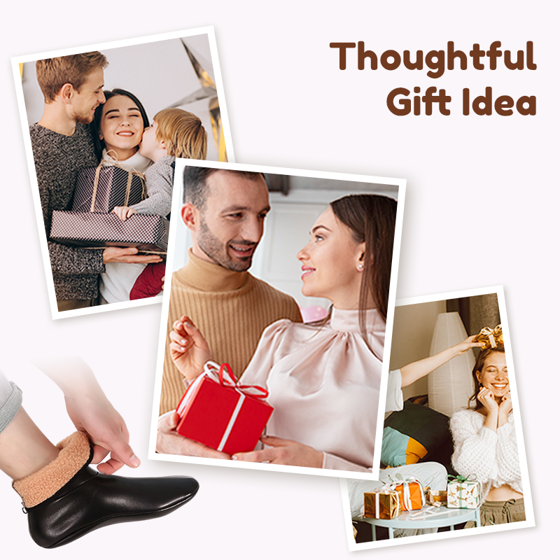 DEBELO PLIŠANO OBLOGO: Zagotavlja izjemno toploto z učinkovitim zadrževanjem telesne toplote. Stopala ostanejo topla in zaščitena pred mrazom, zaradi česar so idealna za nošenje na hladnih tleh in v težkih vremenskih razmerah.